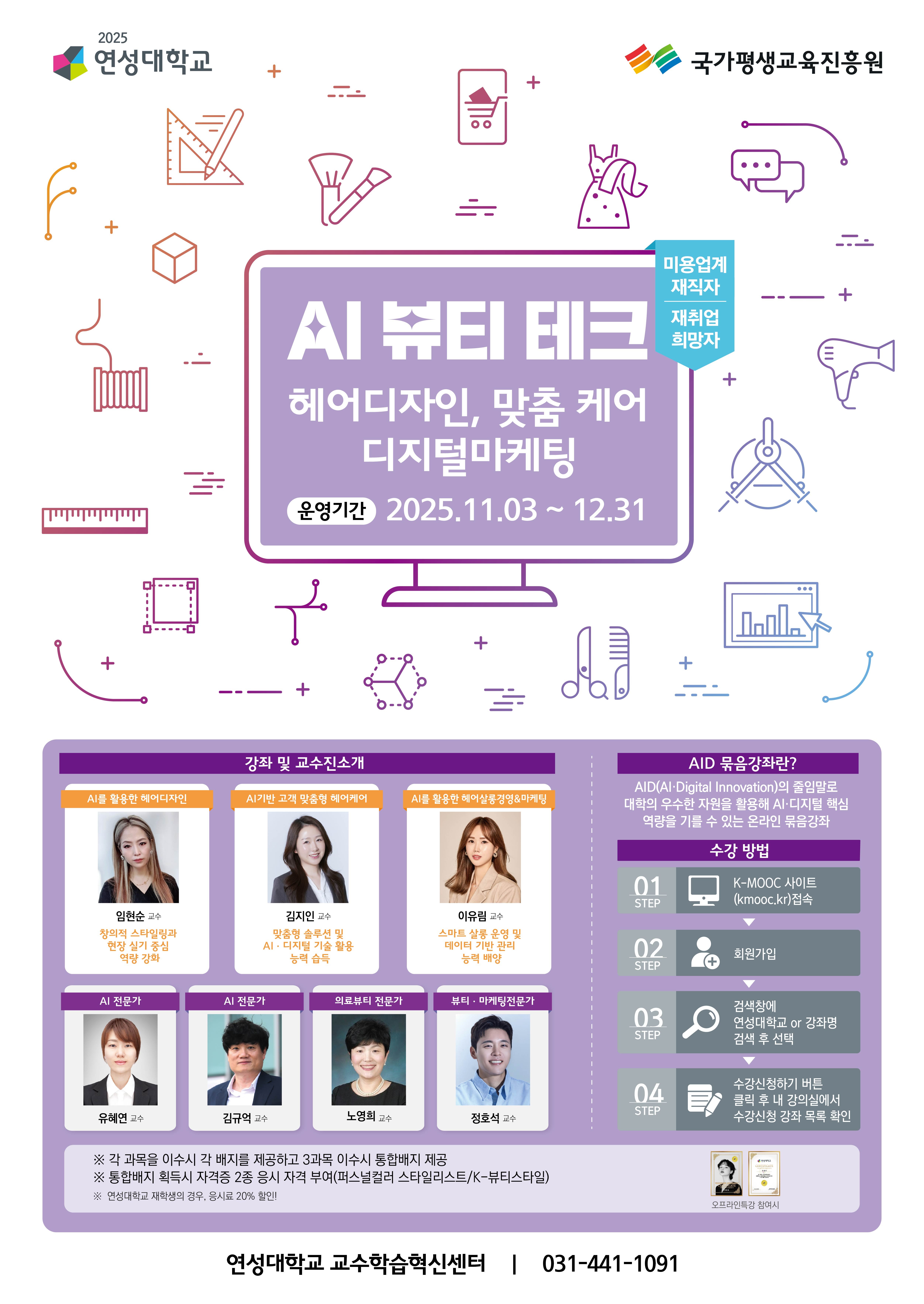 묶음강좌명 | AI 뷰티 테크: 헤어디자인, 맞춤 케어, 디지털 마케팅 | |