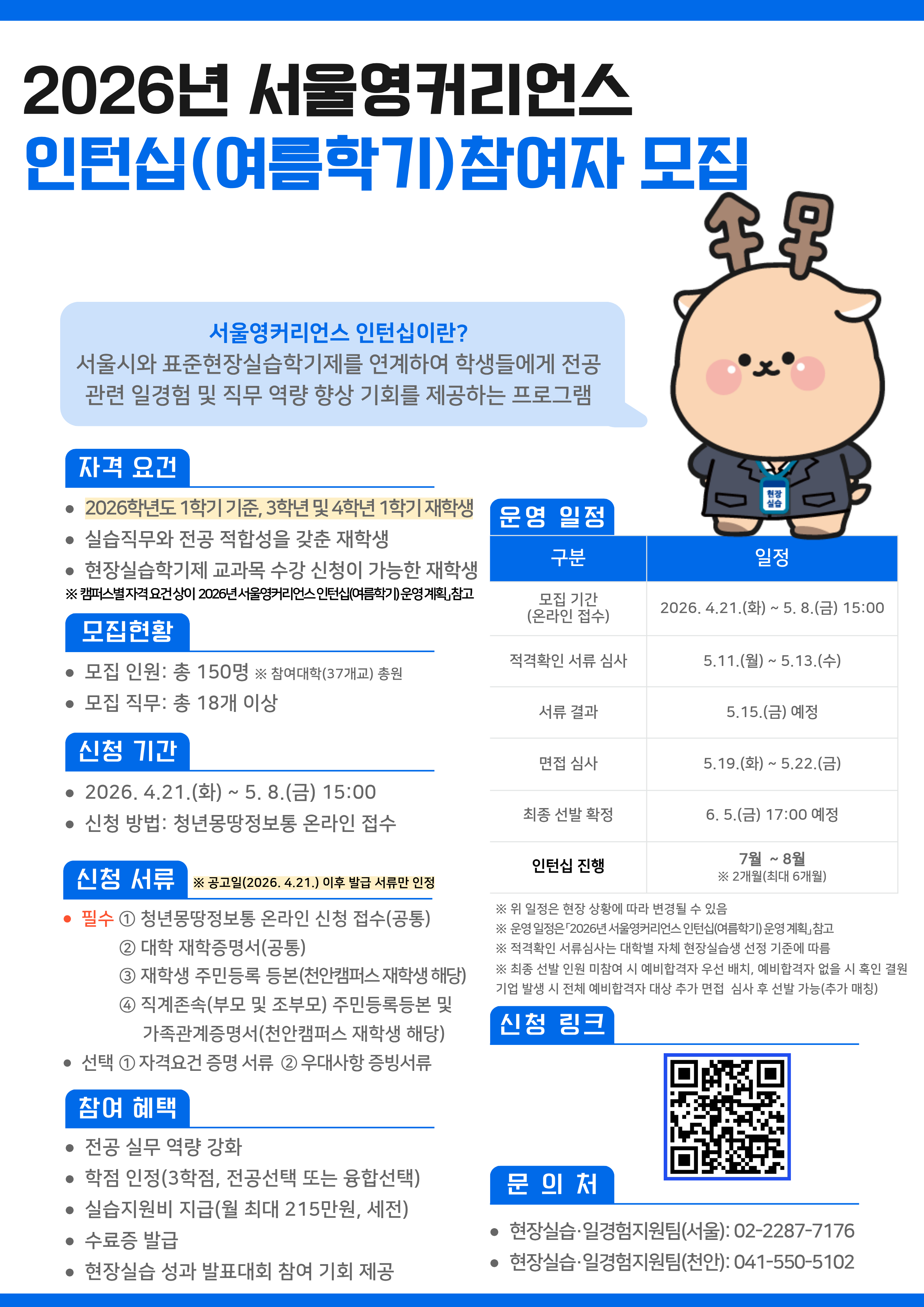 · 문의처: 현장실습·일경험지원팀(서울)/02-2287-7176